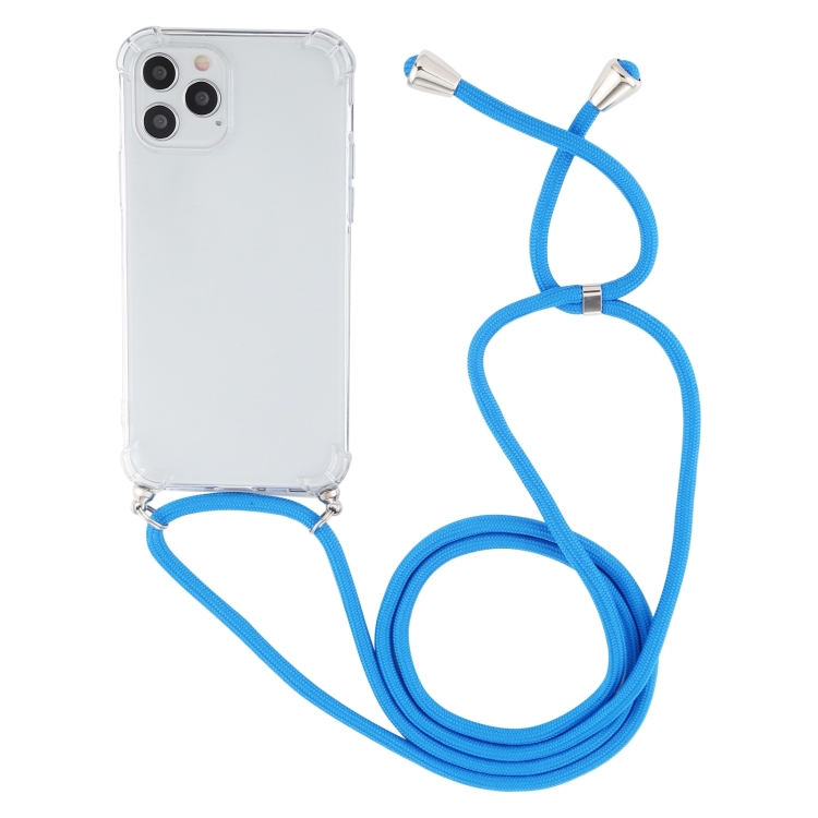 Funda para iPhone 15 Plus TPU Transparente a Prueba de Golpes de Cuatro Esquinas con Cordón (Azul)