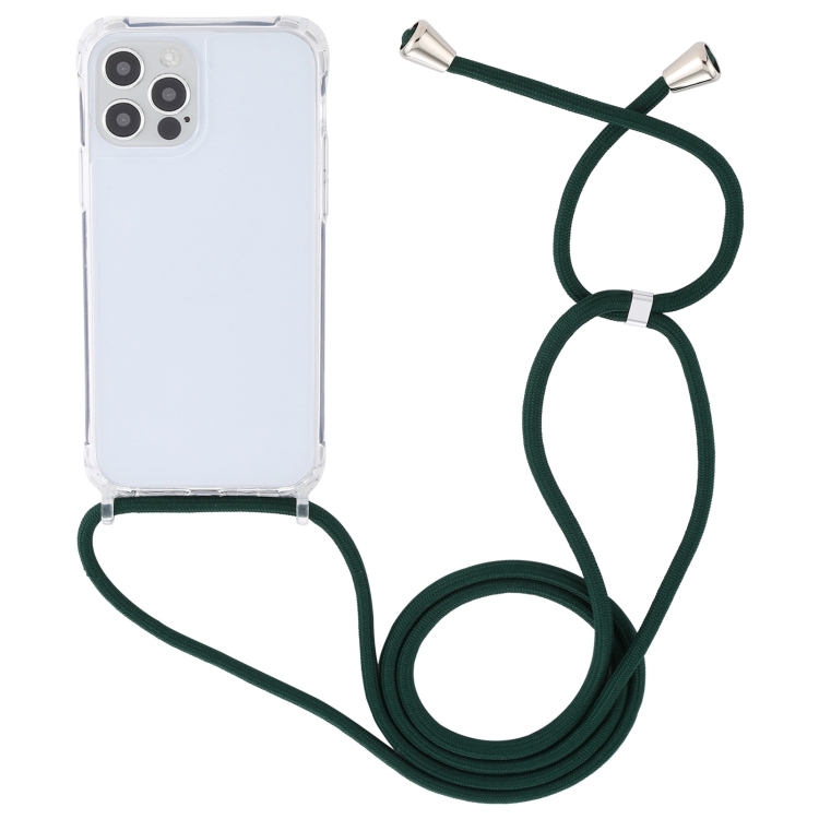 Funda Protectora Acrílico para iPhone 15 Plus a Prueba de Golpes con Cordón (Verde Oscuro)