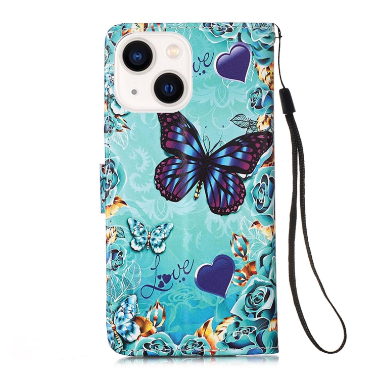 Funda para iPhone 15 Plus Cuero Tejido Liso Patrón Dibujo Coloreado (Mariposa Cariñosa)