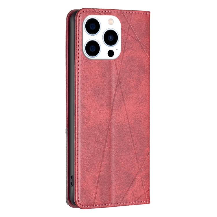 Funda de Teléfono para iPhone 15 Pro Cuero Magnético Textura de Rombos (Rojo)