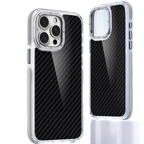 Funda de Teléfono Híbrida TPU Acrílica Fibra de Carbono para iPhone 15 Pro (Gris)