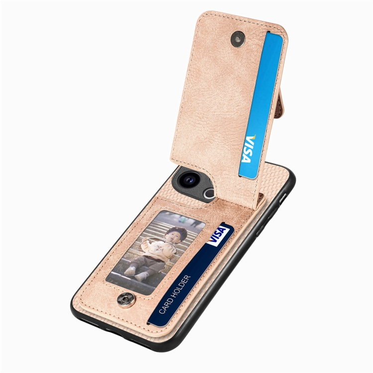 Funda para Teléfono iPhone 15 Pro con Cremallera y Tapa Vertical de Fibra de Carbono (Caqui)