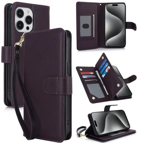 Funda para Teléfono iPhone 15 Pro Cuero Rfid con Billetera MultiTarjeta (Púrpura Oscuro)