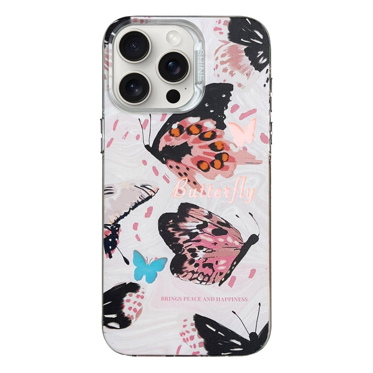 Funda para Teléfono iPhone 15 Pro TPU + PC con Patrón Colorido (Mariposas Rosadas)