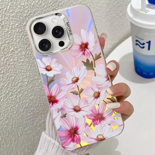 Funda para iPhone 15 Pro TPU Galvanoplastia Láser Flor Textura (Cosmos Flower Ah7)