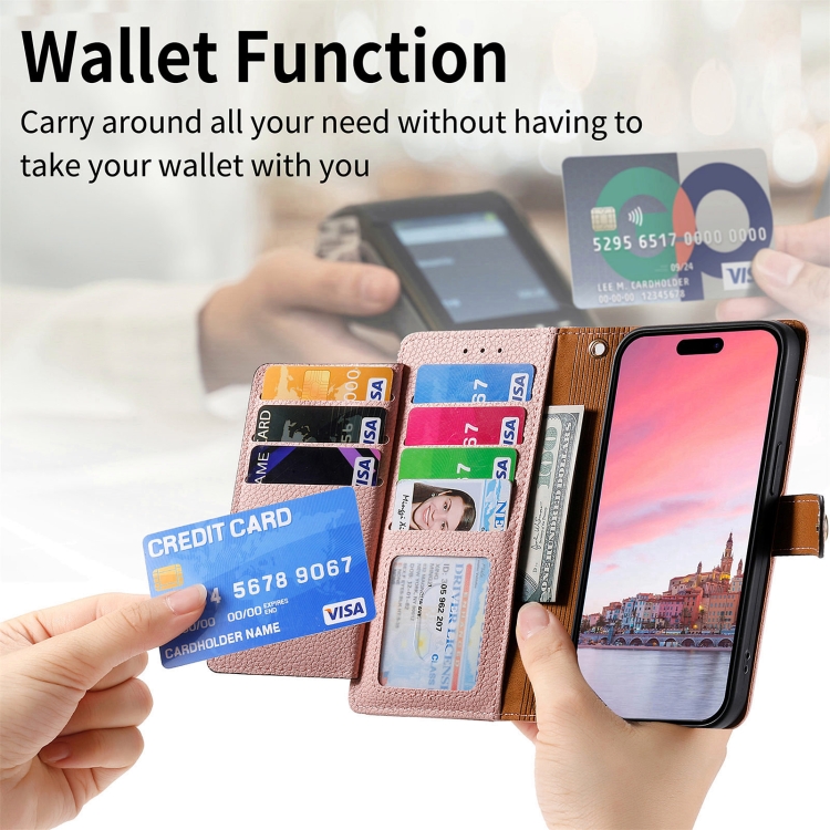 Funda para teléfono iPhone 15 Pro Love Zipper Lanyard de cuero (Rosa)