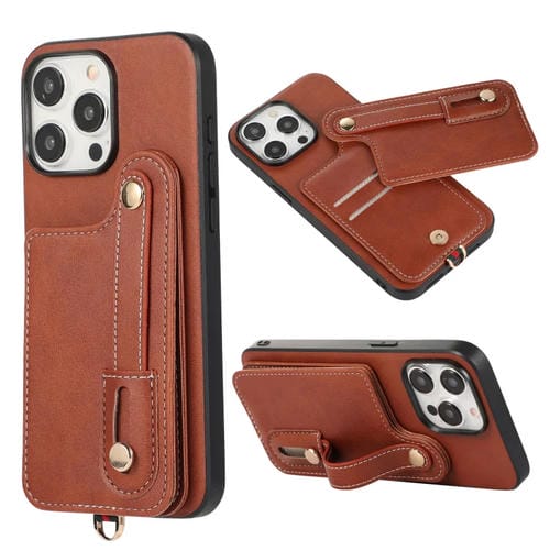 Bolsa para Tarjeta Rfid Funda para Teléfono iPhone 15 Pro Max PU Textura Piel de Vaca (Marrón) (3 unidades)