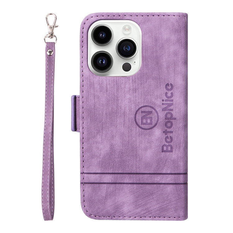 Funda para iPhone 15 Pro Max Betopnice Cuero con Hebilla de Doble Cara (Púrpura)