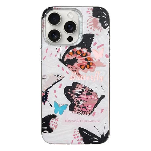 Funda para teléfono iPhone 15 Pro Max TPU + PC con patrón colorido (Mariposas Rosadas)
