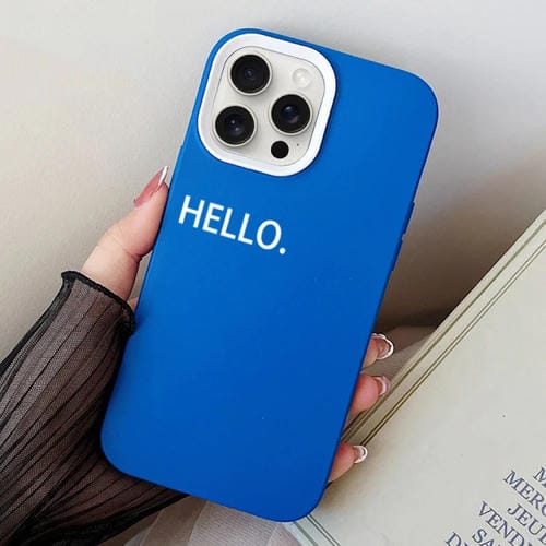 Estuche híbrido para iPhone 15 Pro Max Hello Word PC y TPU (Azul)