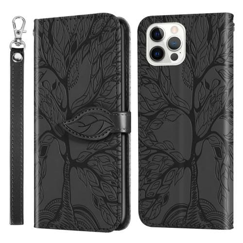 Funda de Cuero Life Tree para iPhone 15 Pro Max con Relieve Patrón (Negro)
