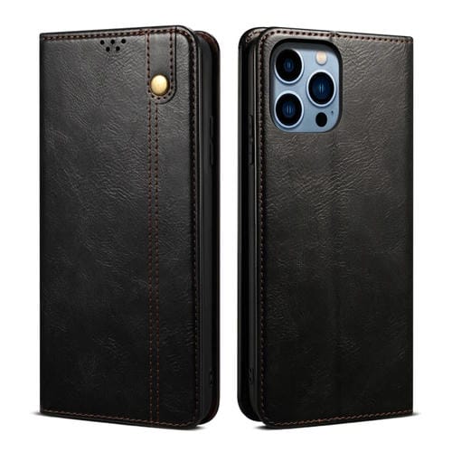 Funda de Cuero para iPhone 15 Pro Max Oil Wax Crazy Horse Texture (Negro)