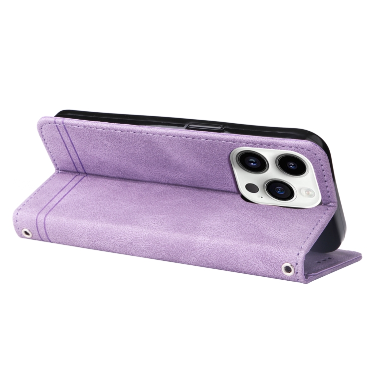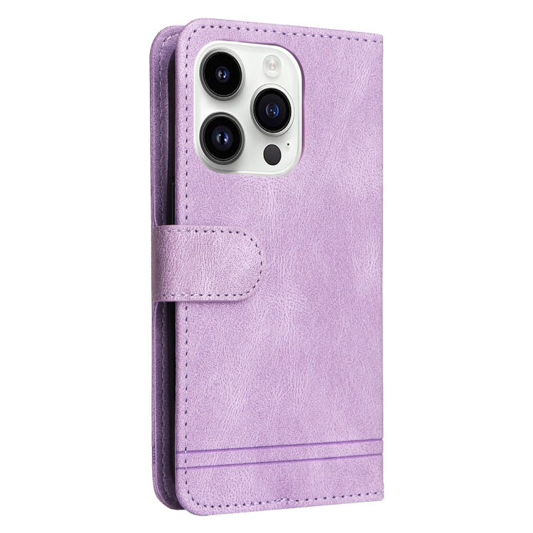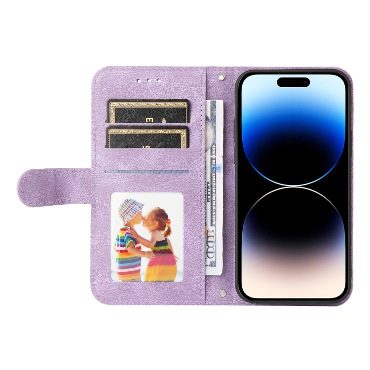 Funda de cuero para iPhone 15 Pro Max Skin Feel Life Tree para teléfono (Púrpura)