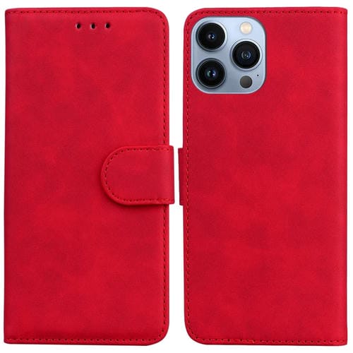 Funda para teléfono iPhone 15 Pro Skin Feel Pure Color Flip de cuero (Rojo)