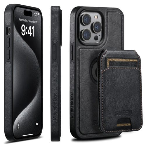 Funda para Teléfono Suteni M2 para iPhone 15 Pro con Bolsa para Tarjeta Horizontal (Negro)