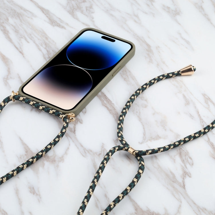 Funda para Teléfono iPhone 15 Pro Wheat Straw TPU a Prueba de Golpes con Cordón para Cuello (Verde Oscuro)