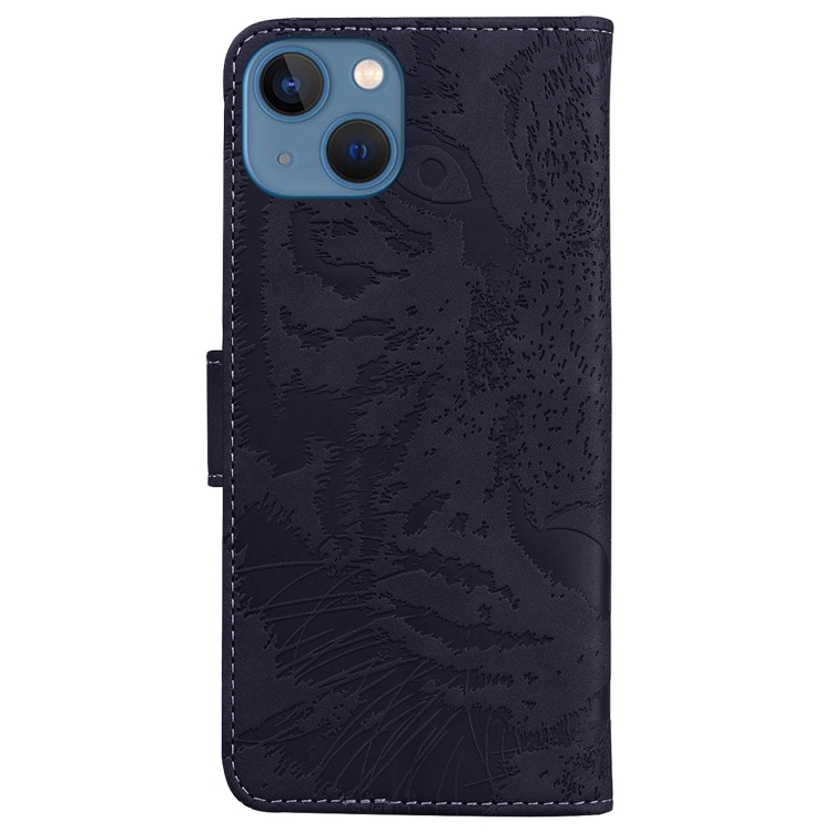 Funda para iPhone 15 Tiger Embossing Pattern de Cuero para Teléfono (Negro)
