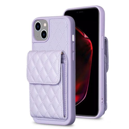 Funda para iPhone 15 Vertical Wallet Rhombic Leather Phone Case (Púrpura)