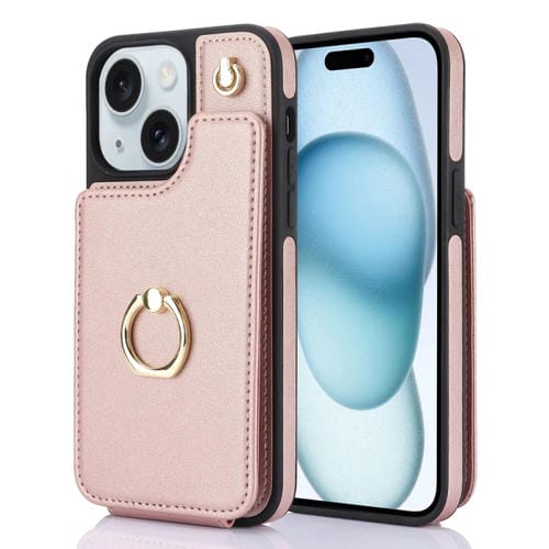Funda para Teléfono Ym005 Skin Feel Card Bag para iPhone 15 con Cordón Largo (Oro Rosa)
