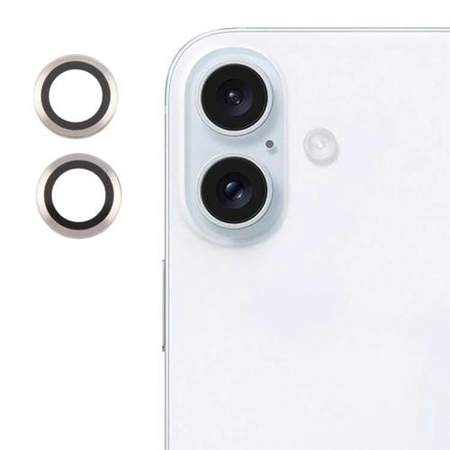 Cubierta de Cámara Trasera iPhone 16/16 Plus Película Vidrio Templado 9H (Plateada)