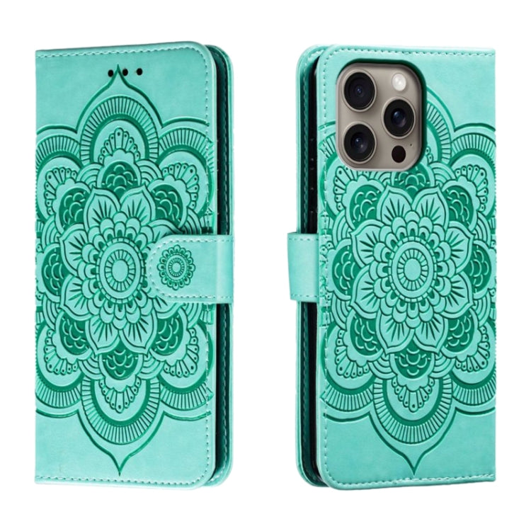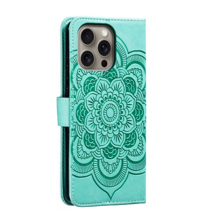 Funda para Teléfono iPhone 16 Pro Max Cuero Tapa Horizontal Patrón Mandala (Verde)