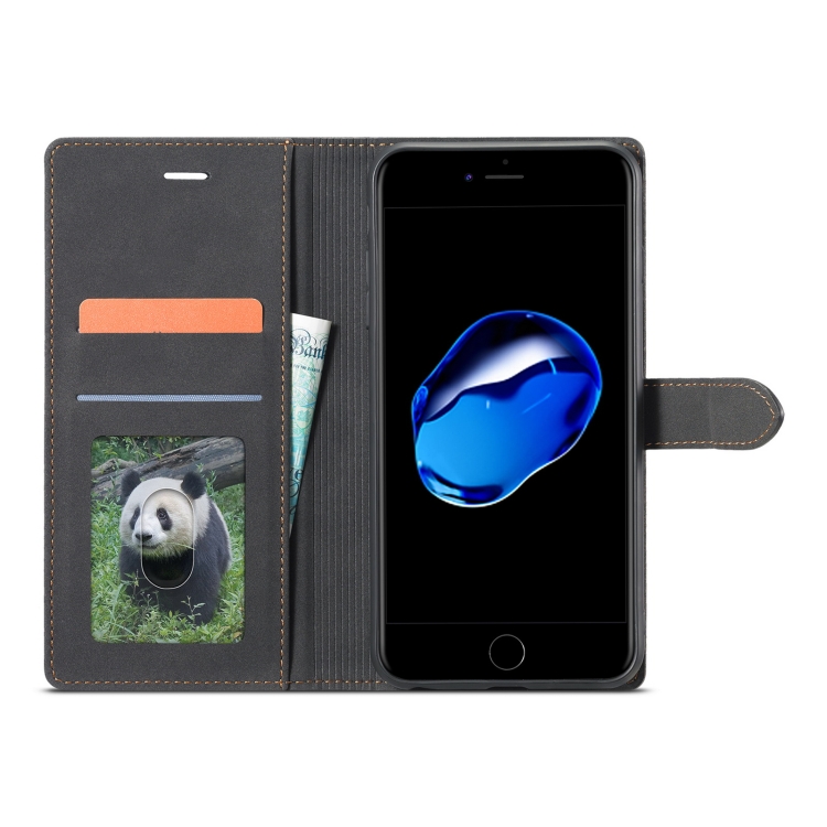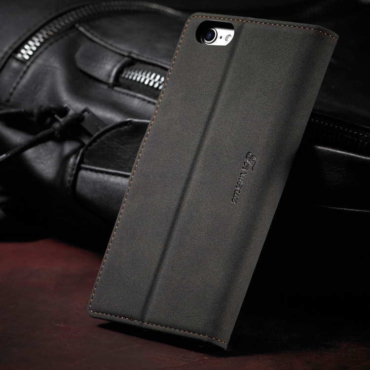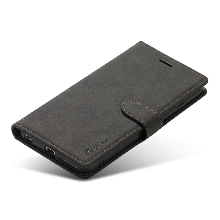 Funda de cuero FoRWenw F1 Series para iPhone 6 / 6S con tapa horizontal, soporte, ranuras para tarjetas y marco de fotos (Negro)
