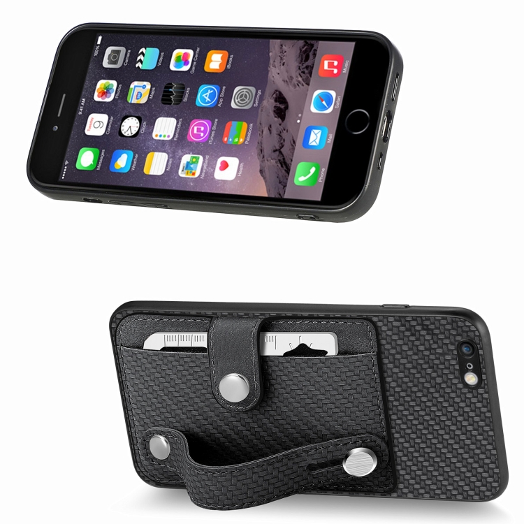Muñequera Kickstand Tarjeta Monedero Contraportada Caja para iPhone 6 / 6S con Herramienta Cuchillo (Negro)