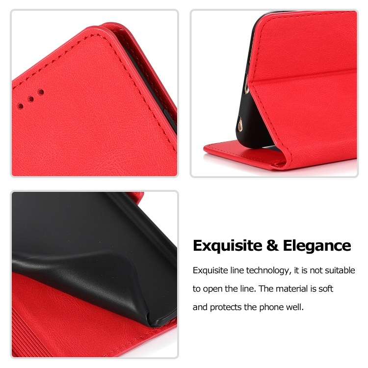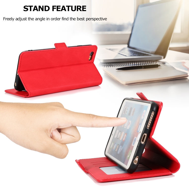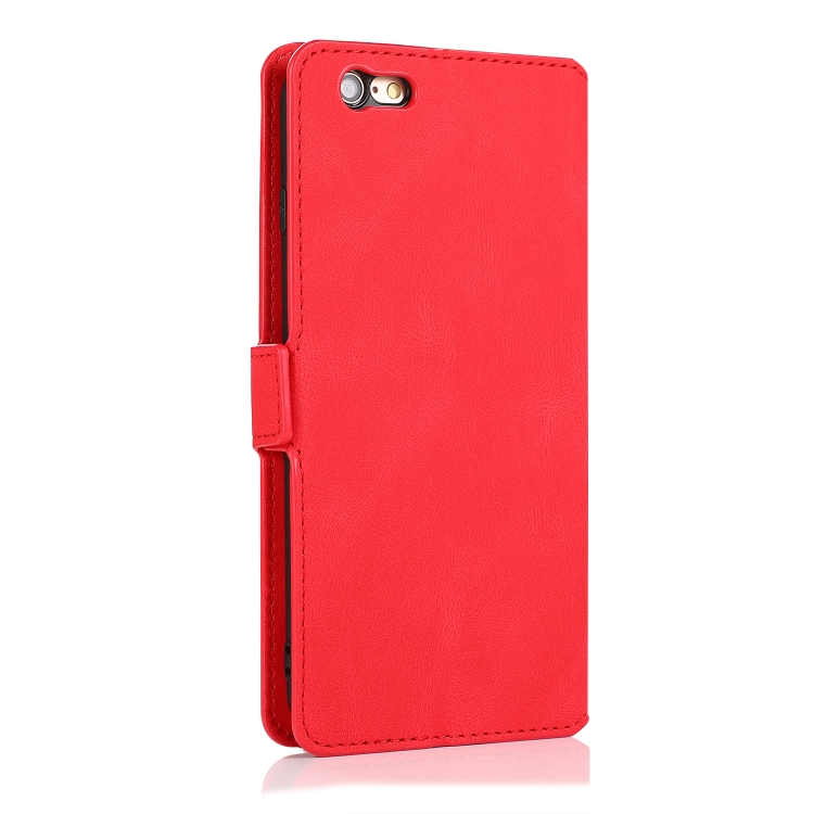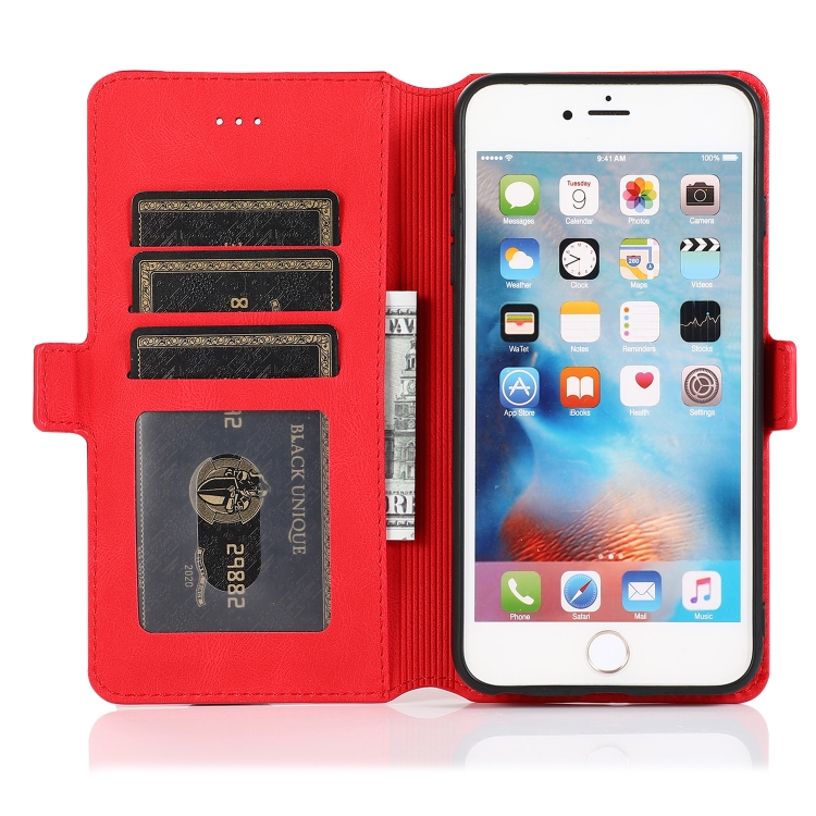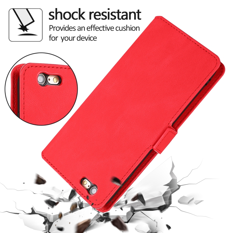 Estuche de Cuero Abatible Horizontal para iPhone 6 con Cierre Magnético, Soporte, Ranuras para Tarjetas y Marco de Fotos (Rojo)