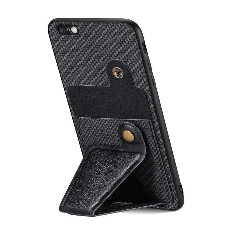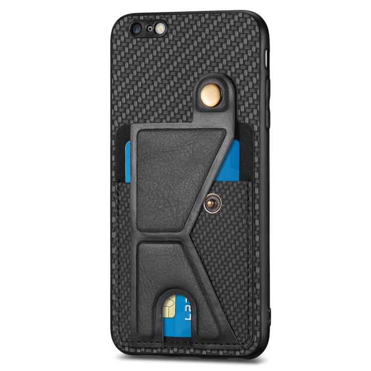 Funda para Teléfono iPhone 6 Plus 6S Plus Cartera Fibra de Carbono Flip Card con Soporte en Forma de K (Negro)