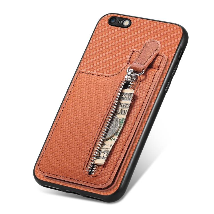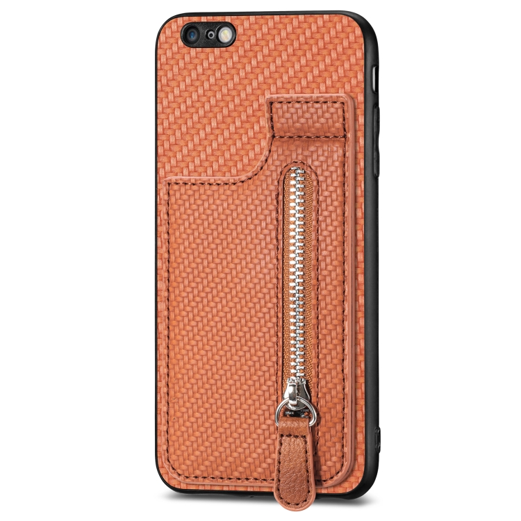 Funda de teléfono iPhone 6 Plus 6S Plus con cremallera vertical fibra de carbono (Marrón)