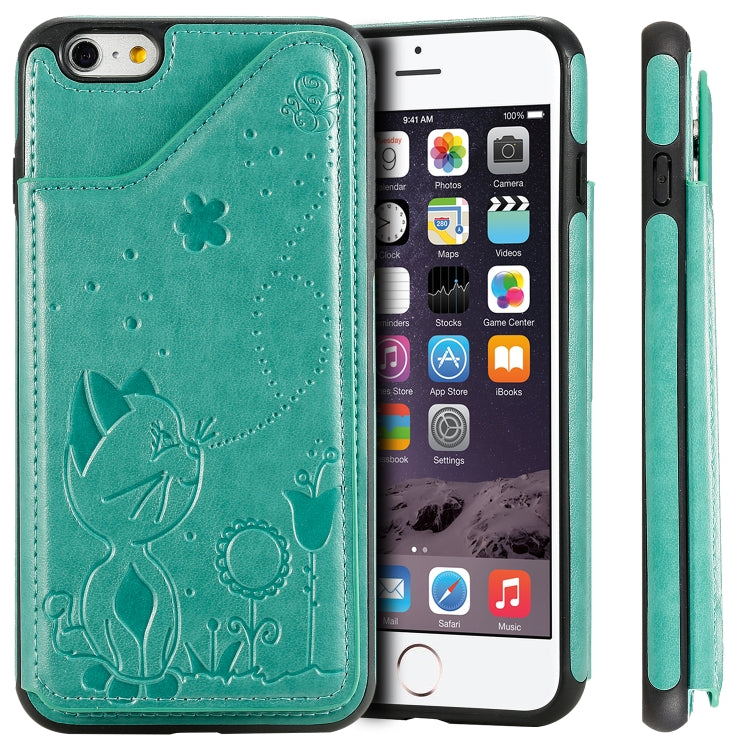 Estuche protector iPhone 6 Plus Cat Bee con estampado en relieve, ranuras para tarjetas y marco de fotos (Verde)