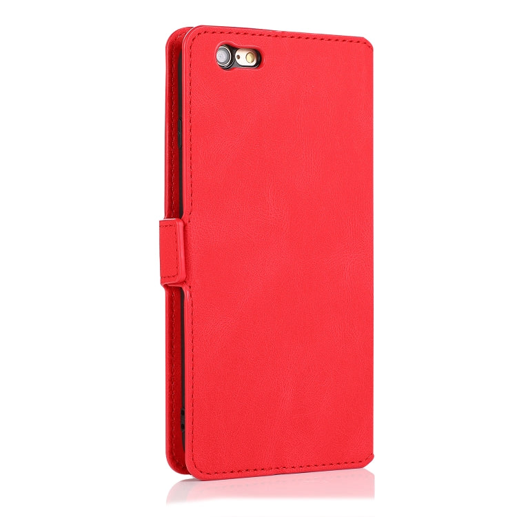 Estuche de Cuero para iPhone 6 Plus con Cierre Magnético Horizontal Soporte Ranuras Tarjetas Marco Fotos Billetera (Rojo)