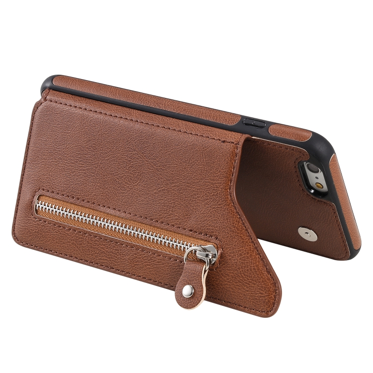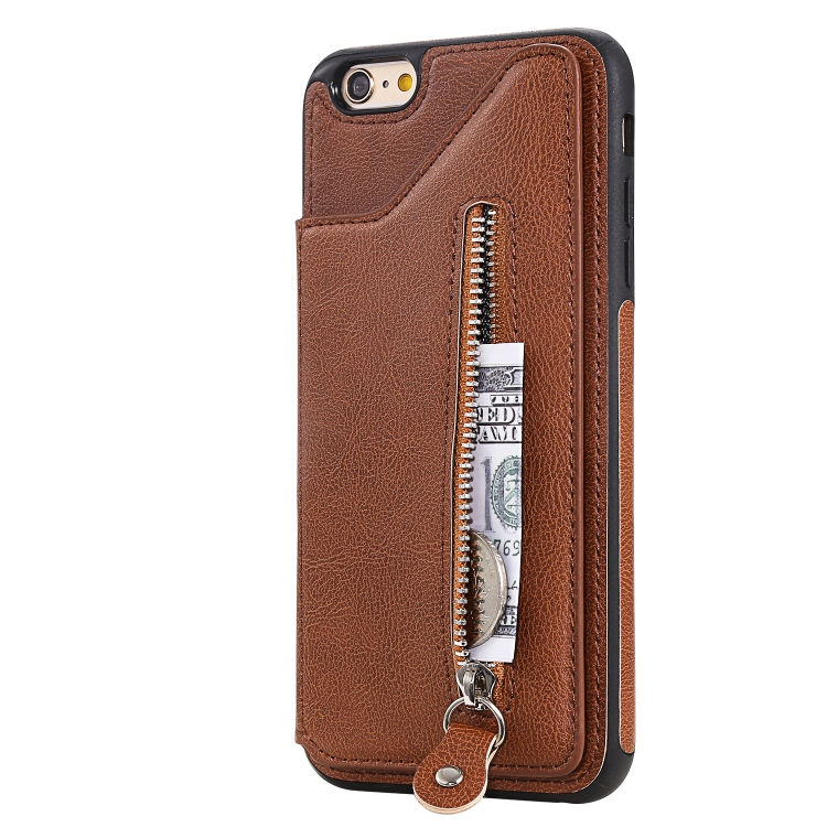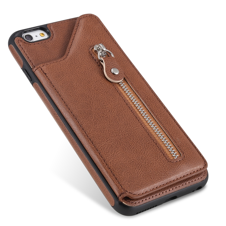Funda Protectora para iPhone 6 Plus a Prueba de Golpes con Cremallera y Doble Hebilla (Marrón)