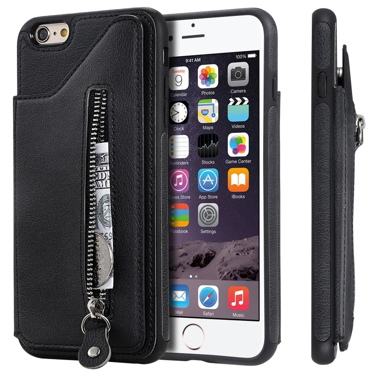 Funda Protectora para iPhone 6 Plus a Prueba de Golpes con Cremallera y Doble Hebilla (Negro)