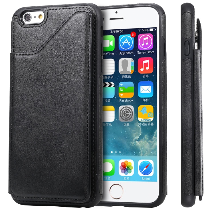 Funda Protectora iPhone 6 Plus Textura de Becerro a Prueba de Choques con Soporte y Tragamonedas (Negro)
