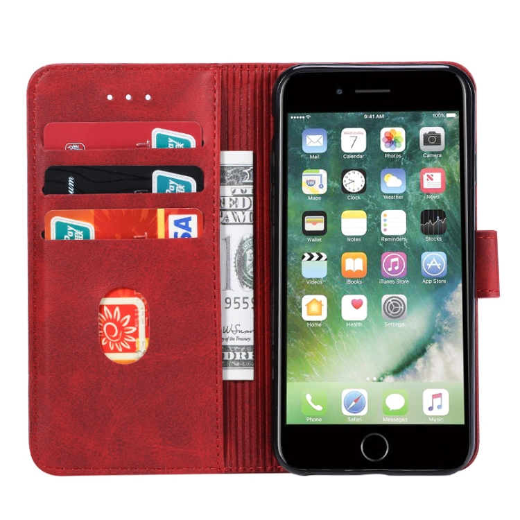 Funda para iPhone 6 Plus Gussim Magnética de Cuero con Tapa Horizontal, Soporte, Ranuras para Tarjetas y Billetera (Rojo)
