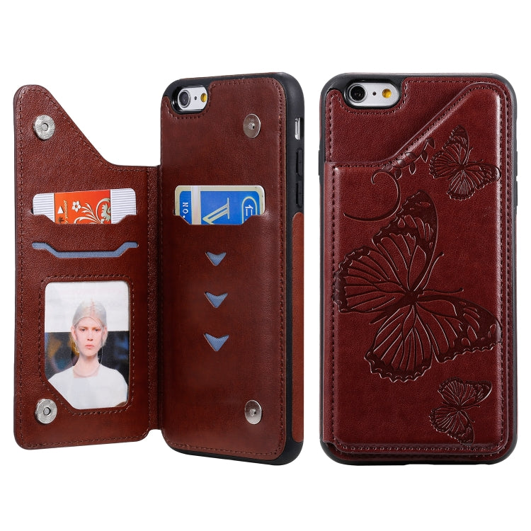 Funda Protectora iPhone 6 Plus Estampado Mariposa con Soporte y Ranuras para Tarjetas (Marrón)