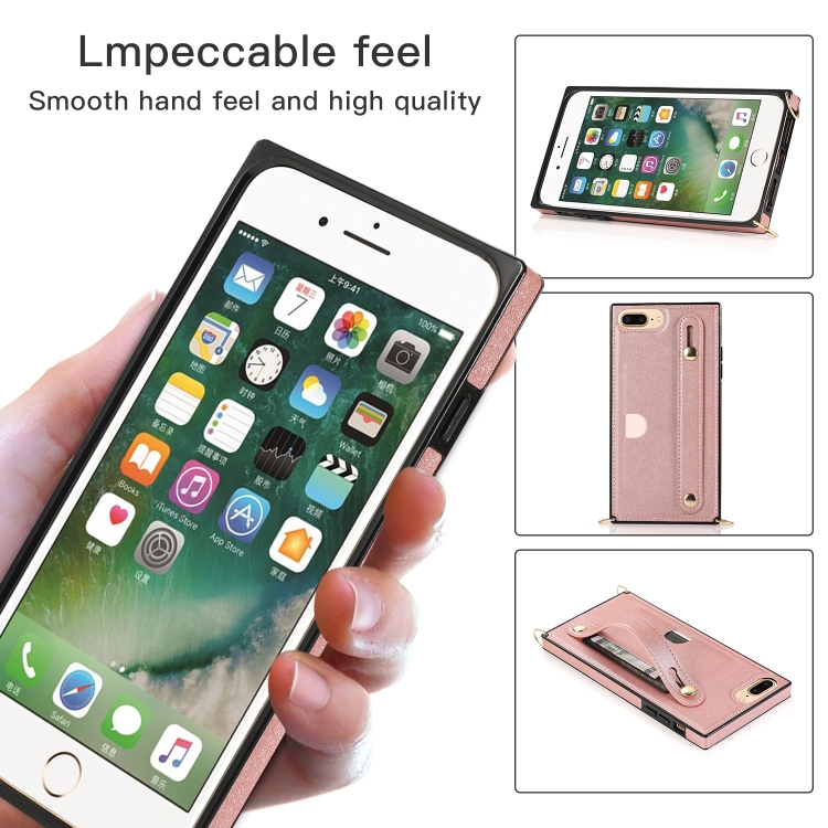 Funda Protectora para iPhone 6 Plus Pu + TPU con Strap, Crossbody Lanyard, Holder y Tarjeta Slot (Oro Rosa)
