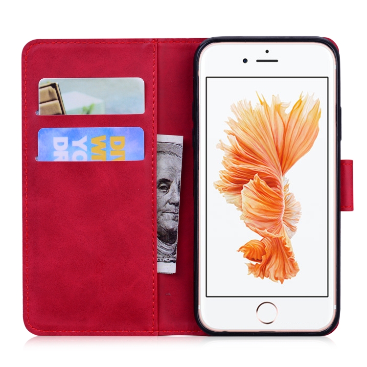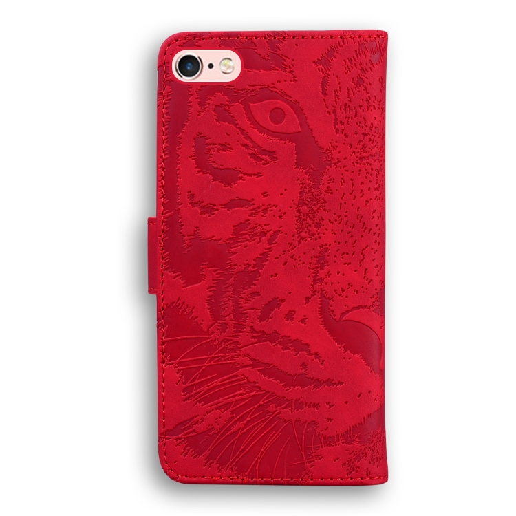 Funda de Cuero para iPhone 6S Plus y 6 Plus Tiger Embossing con Tapa Horizontal, Soporte, Ranuras para Tarjetas y Billetera (Rojo)