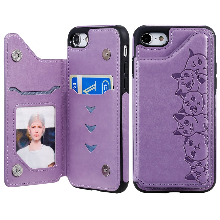 Funda Protectora Six Cats para iPhone 7/8 con Patrón En Relieve, Soporte, Ranuras para Tarjetas y Marco de Fotos (Púrpura)