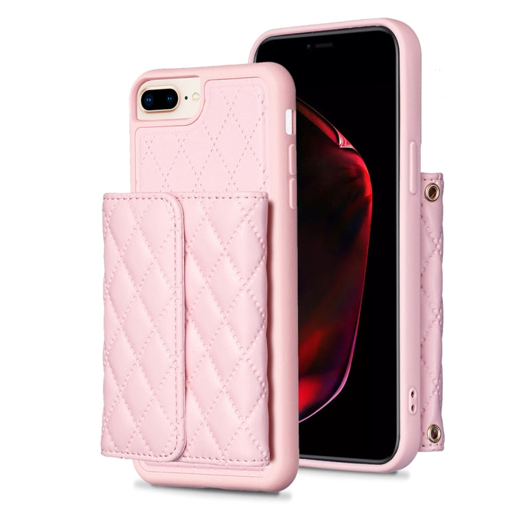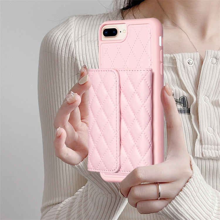 Estuche de Teléfono para iPhone 7 Plus / 8 Plus Cuero Rómbico con Billetera Horizontal (Rosa)
