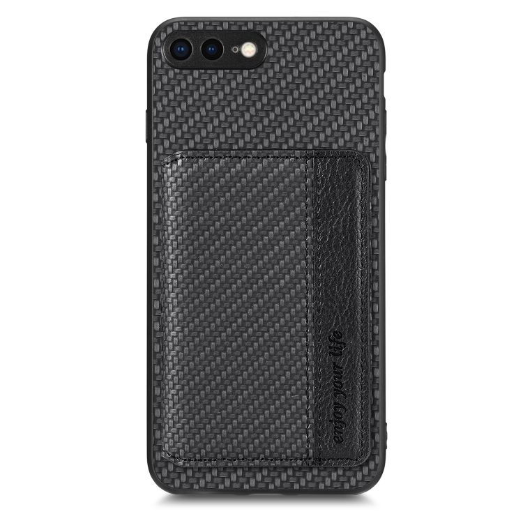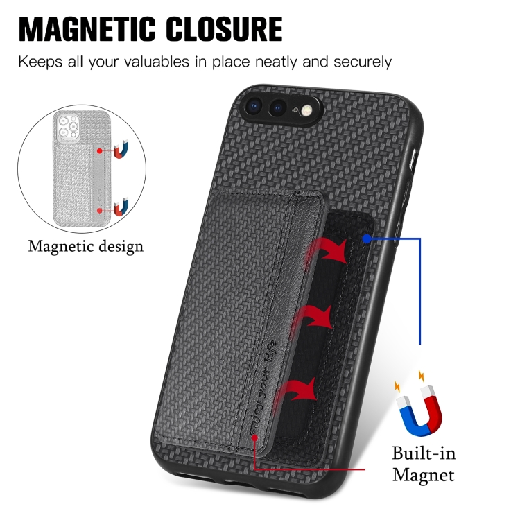 Estuche para Teléfono iPhone 7 Plus 8 Plus con Bolsa de Tarjeta Magnética Fibra de Carbono (Negro)