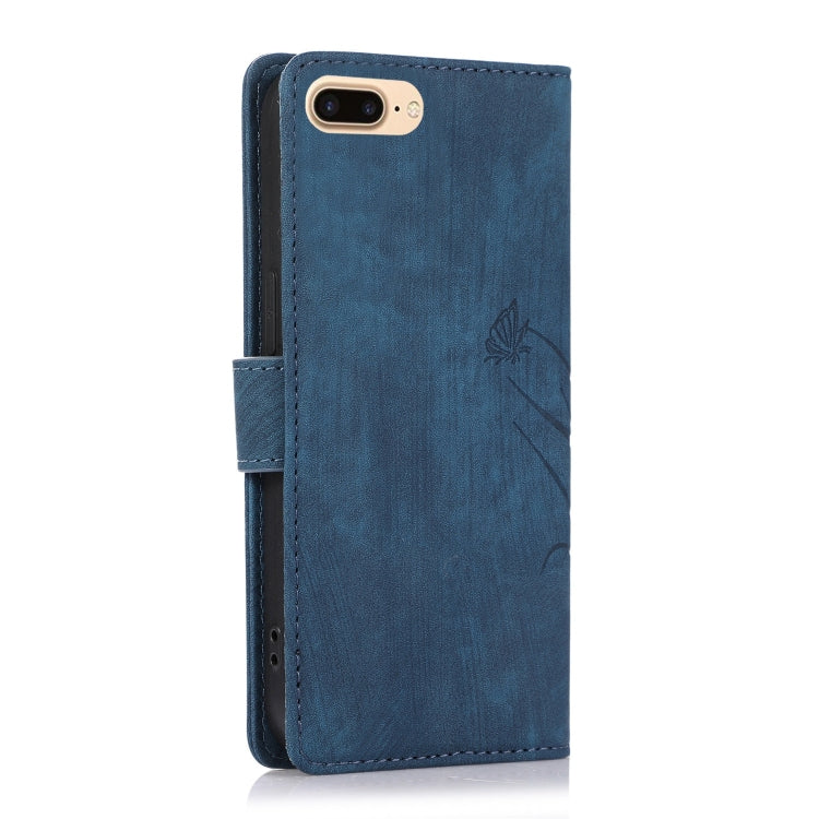 Funda para Teléfono iPhone 7 Plus/8 Plus Cuero Relieve Mariposa Orquídea (Azul)