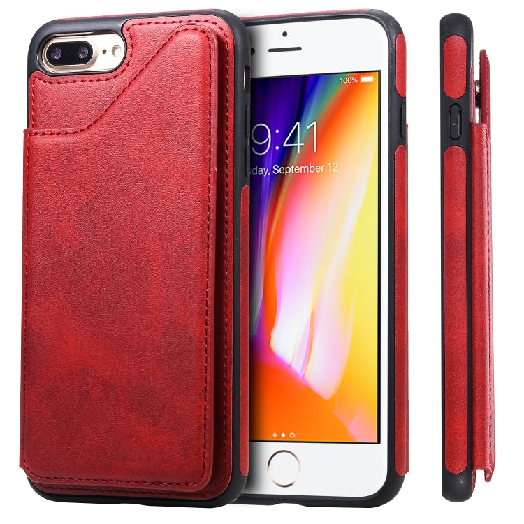 Funda Protectora iPhone 7 Plus 8 Plus Textura Pantorrilla Soporte Ranuras Tarjetas Marco (Rojo)