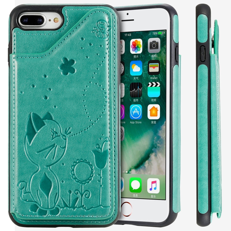 Estuche Protector para iPhone 8 Plus / 7 Plus Cat Bee Patrón en Relieve a Prueba de Golpes con Ranuras para Tarjetas y Marco de Fotos (Verde)
