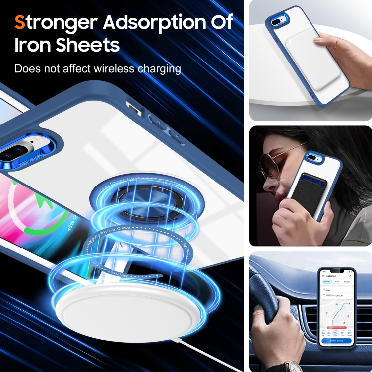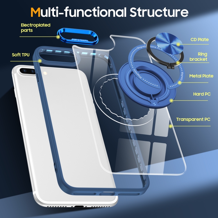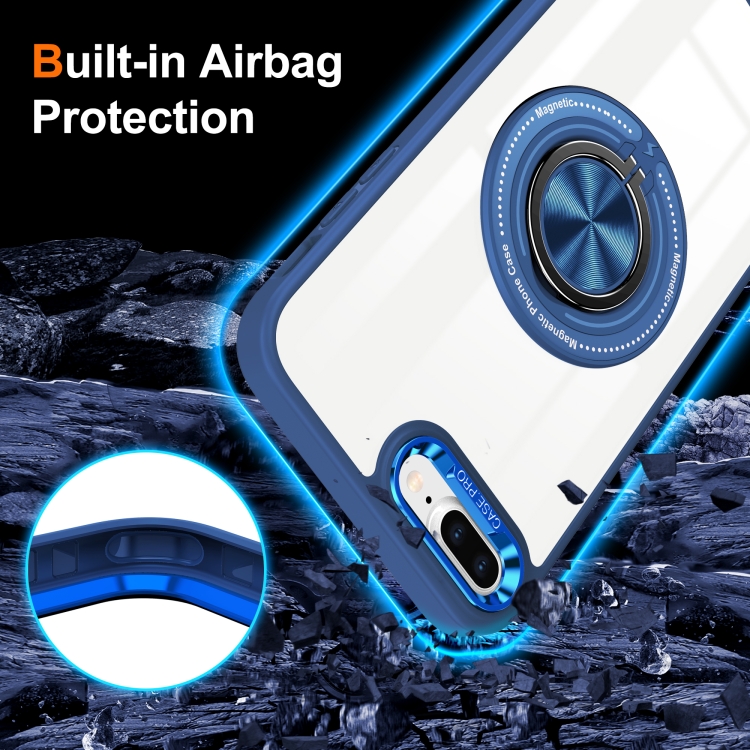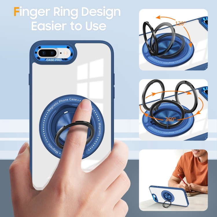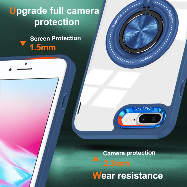 Funda para Teléfono iPhone 8 Plus/7 Plus con Soporte de Anillo Giratorio Magnético (Azul Oscuro)