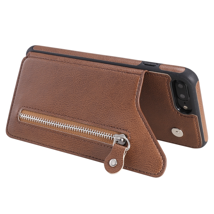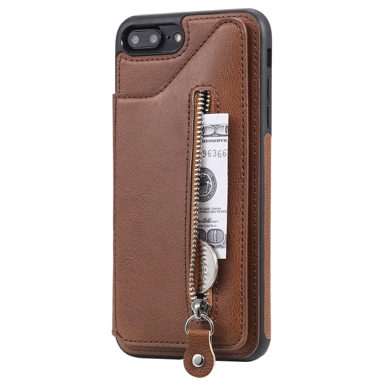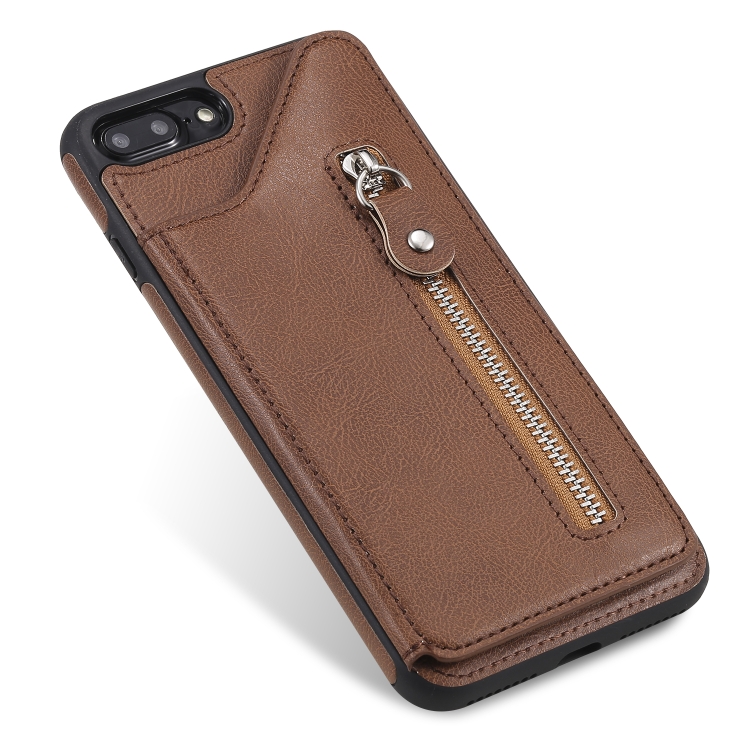 Funda Protectora para iPhone 8 Plus y 7 Plus a Prueba de Golpes con Cremallera y Doble Hebilla (Marrón)