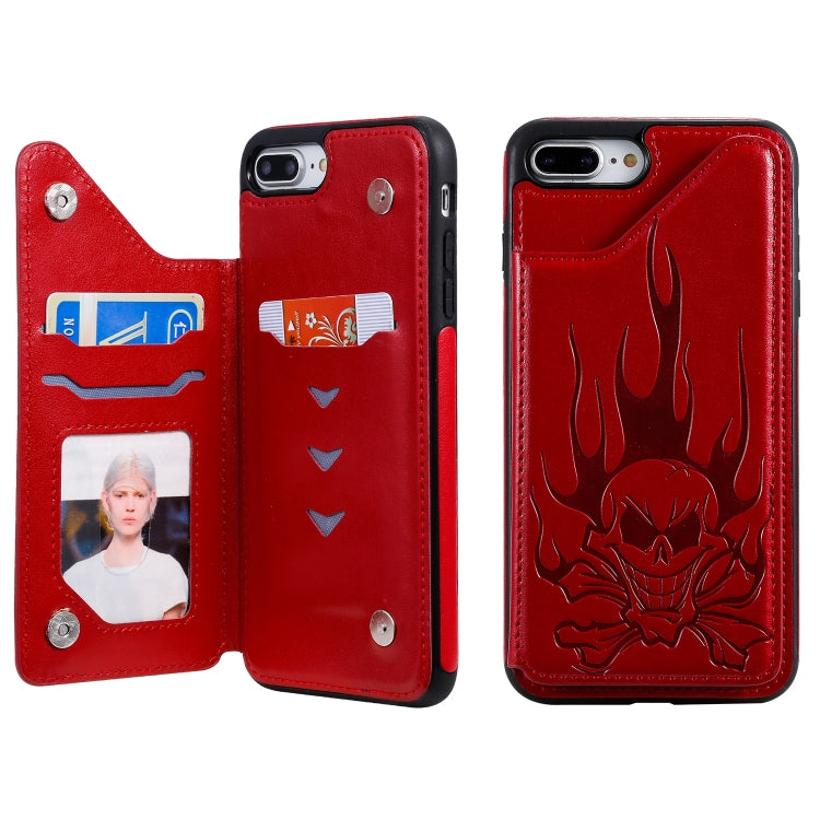 Estuche Protector para iPhone 8 Plus y 7 Plus Skull Head Patrón En Relieve a Prueba de Golpes con Soporte y Ranuras para Tarjetas (Rojo)