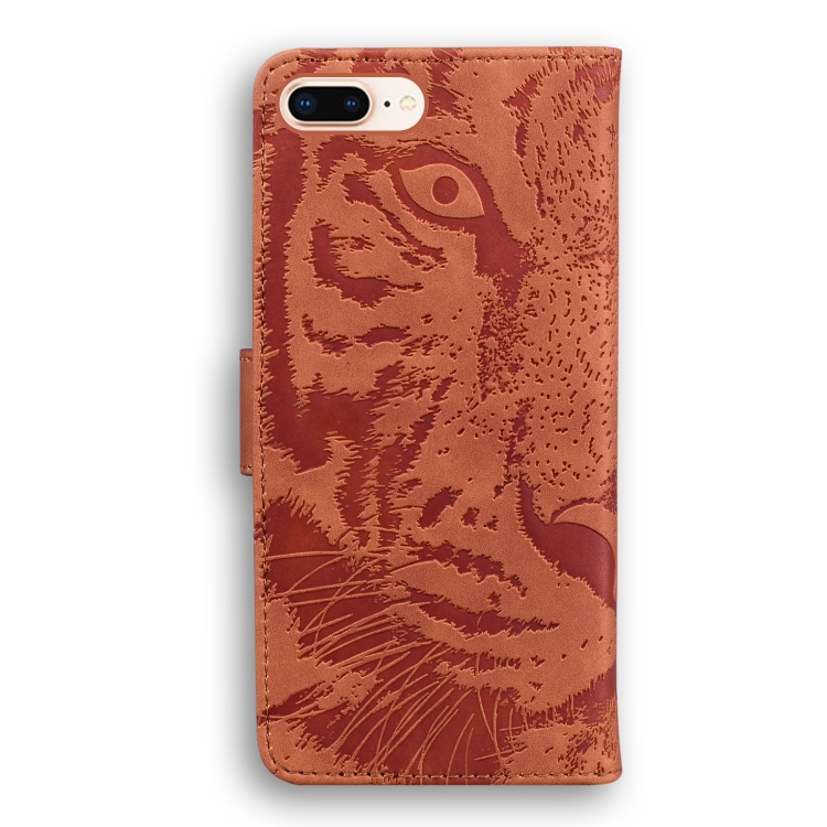 Funda de Cuero Tiger Embossing para iPhone 8 Plus y 7 Plus con Tapa Horizontal, Soporte, Ranuras para Tarjetas y Billetera (Marrón)