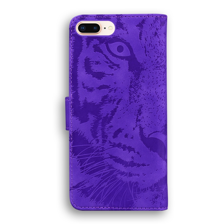 Funda de Cuero iPhone 8 Plus 7 Plus Tiger Embossing con Tapa Horizontal Soporte Ranuras Tarjetas Billetera (Morado)